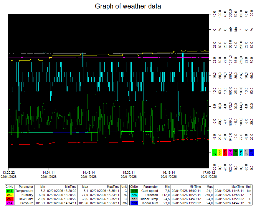 | Maximum Temperature (since midnight) | -5.8°C at: 14:11 | Minimum Temperature (since midnight) | -9.6°C at: 04:03 |