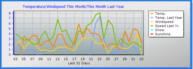 Record high temperature: 9.3 oC at: 15:11 on: 31 Mar 2026