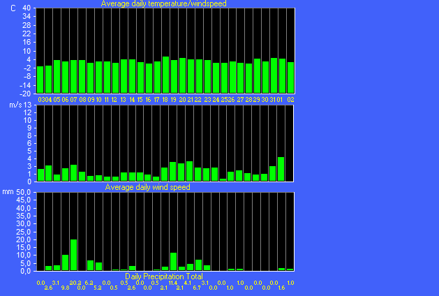 Minimum dewpoint = -3.1°C on day 01 at time 17:16
